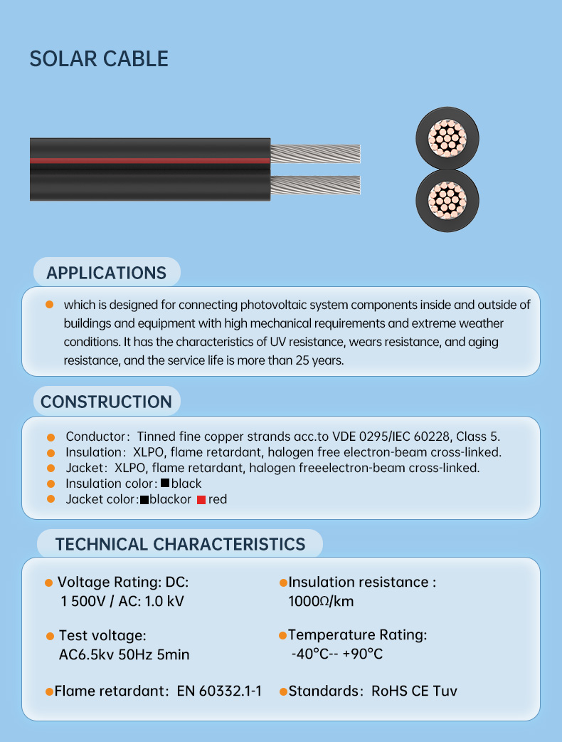 * 100% tinned cooper minimizes power loss in your solar panel system.